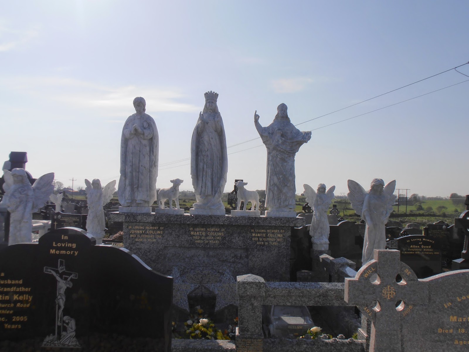 "Leigue cemetery is one of the largest burial grounds in County Mayo with over 3,000 graves. The "Friends of Leigue" organization chaired by Ballina town councillor, Johnnie O'Malley, has done a remarkable job of restoring the cemetery over the past decade. There are about 300 headstones in the two older sections of the cemetery: the old graveyard around the ruins of Kilmore Church, and the Old Leigue Cemetery inside the walls at the top of the hill where many graves are unmarked. The majority of the headstones are in the new section where the headstones date back to about 1900.